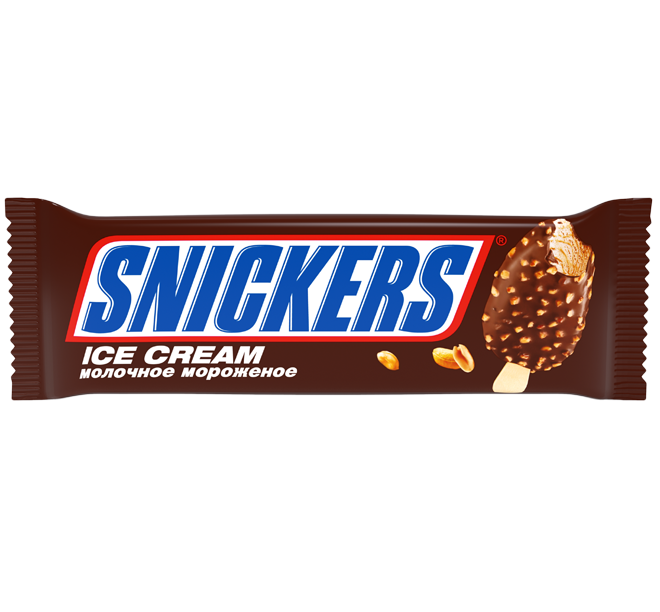 Эскимо "Сникерс" молочное мороженое с арахисом, 65 г