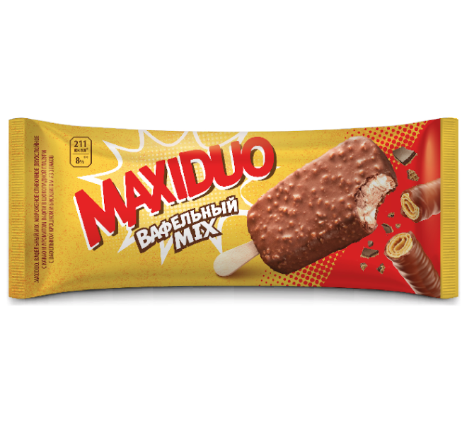 Главная → Каталог → Мороженое → Эскимо → Эскимо "МаксиДуо" вафельный микс, 63 г