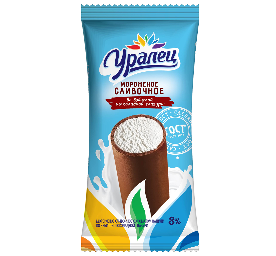 Трубочка "Уралец" сливочное мороженое в шоколадной глазури, 70 г