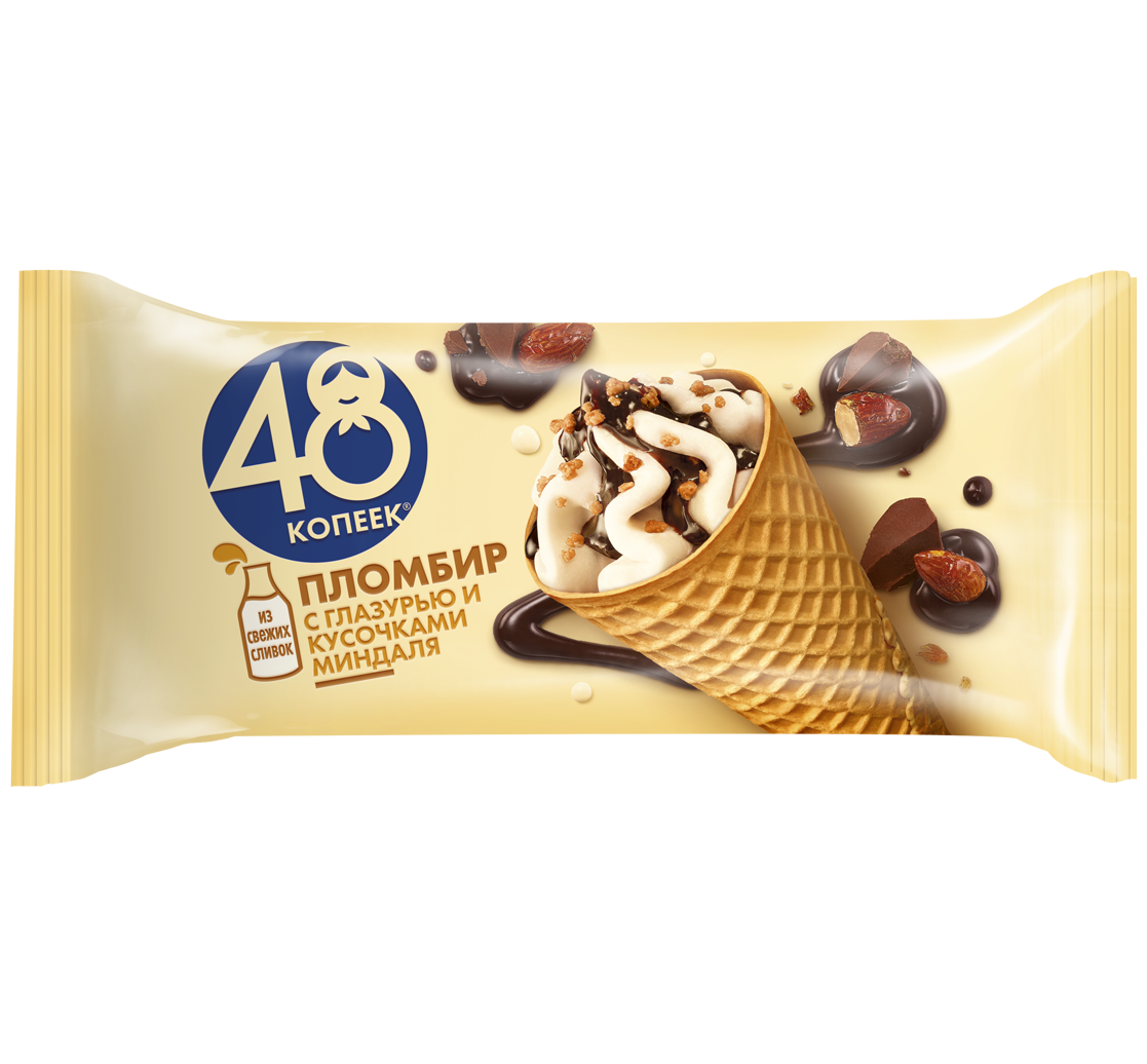 Рожок "48 копеек" пломбир с миндалем, 106 г
