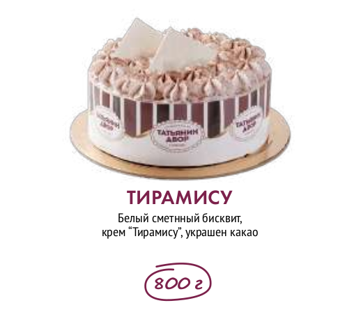 Торт "Тирамису" 800гр/2шт Татьянин двор